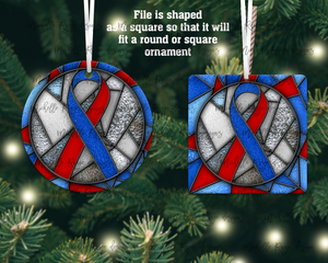 Blue and Red Awareness Ribbon Stained Glass Christmas Ornament, Congenital Heart Defects