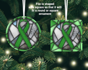 Green Awareness Ribbon Stained Glass Christmas Ornament, Adrenal Cancer, Kidney Cancer