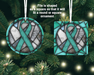 Teal Awareness Ribbon Stained Glass Christmas Ornament, Cervical Cancer, Ovarian Cancer