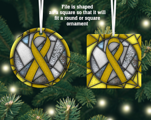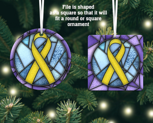 Yellow Awareness Ribbon Stained Glass Christmas Ornament, Bladder Cancer, Liver Cancer