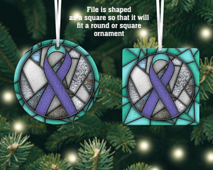 Teal and Purple Awareness Ribbon Stained Glass Christmas Ornament, Suicide Awareness