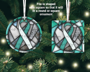 Teal and White Awareness Ribbon Stained Glass Christmas Ornament, Cervical Cancer