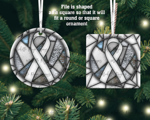 White Awareness Ribbon Stained Glass Christmas Ornament, Lung Cancer, Multiple Sclerosis