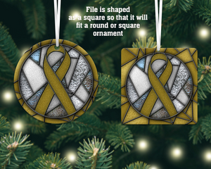 Gold Awareness Ribbon Stained Glass Christmas Ornament, Childhood Cancer, Neuroblastoma