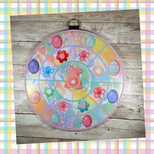 Easter Bunny Flowers and Eggs Dartboard or Door Hanger 10" Round