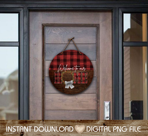 Welcome to Our Home Buffalo Plaid and Wood Grain 18" Round Door Hanger