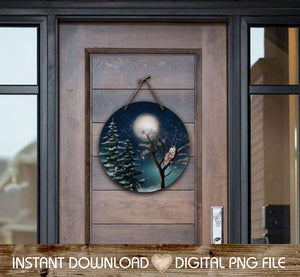 Snowy Winter Full Moon Night with Owl in Snowy Trees 18" Round Door Hanger