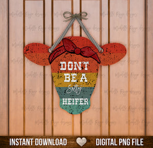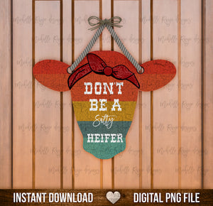 Multicolor Distressed Cow "Don't be a Salty Heifer" for 16.5-inch Wide Door Hanger