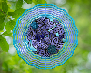Moms Teal and Light Purple Flowers Stained Glass Wind Spinner 10"