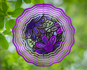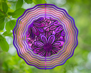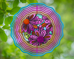 Moms Purple and Hot Pink Flowers Stained Glass Wind Spinner 10"