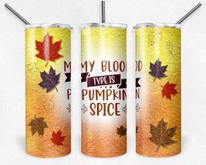 My Blood Type is Pumpkin Spice Fall Leaves on Yellow Orange Ombre Glitter