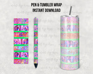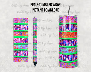 Bright Lime Green Stripes with Purple Foil and Rainbow Glitter and a Place for a Name Combo