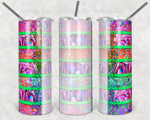 Bright Lime Green Stripes with Purple Foil and Rainbow Glitter and a Place for a Name