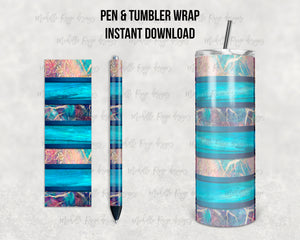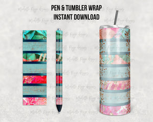 Teal Stripes with Glitter and Flowers and a Place for a Name Combo